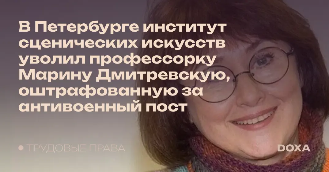 В Петербурге институт сценических искусств уволил профессорку Марину Дмитревскую, оштрафованную за антивоенный пост