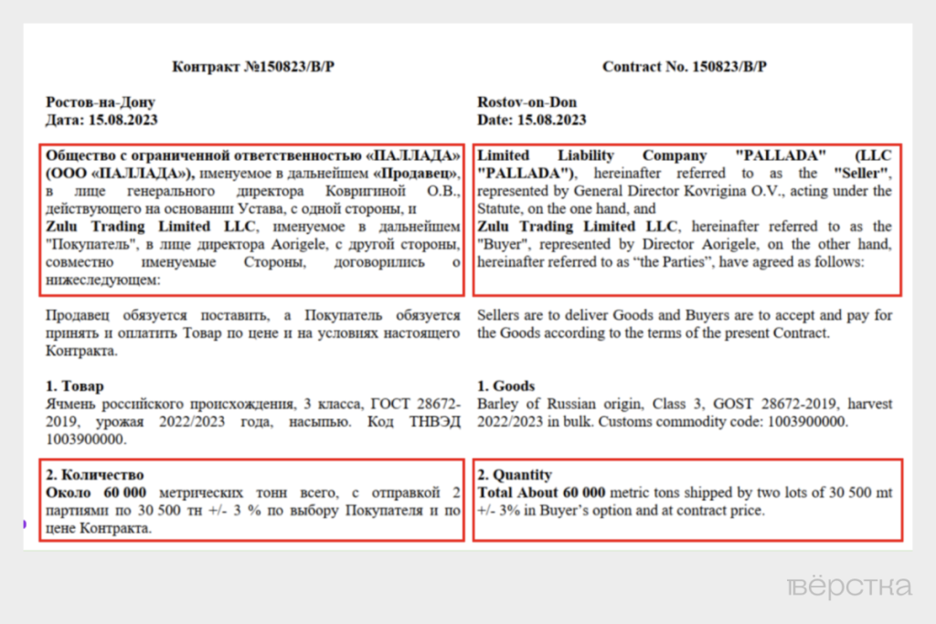 В документах говорится, что продукция произведена на территории Херсонской области. И комиссия согласовала этот вывоз. По контракту, покупатель — турецкая компания Velar Tarim Sanayi Ticaret LTD. STI.