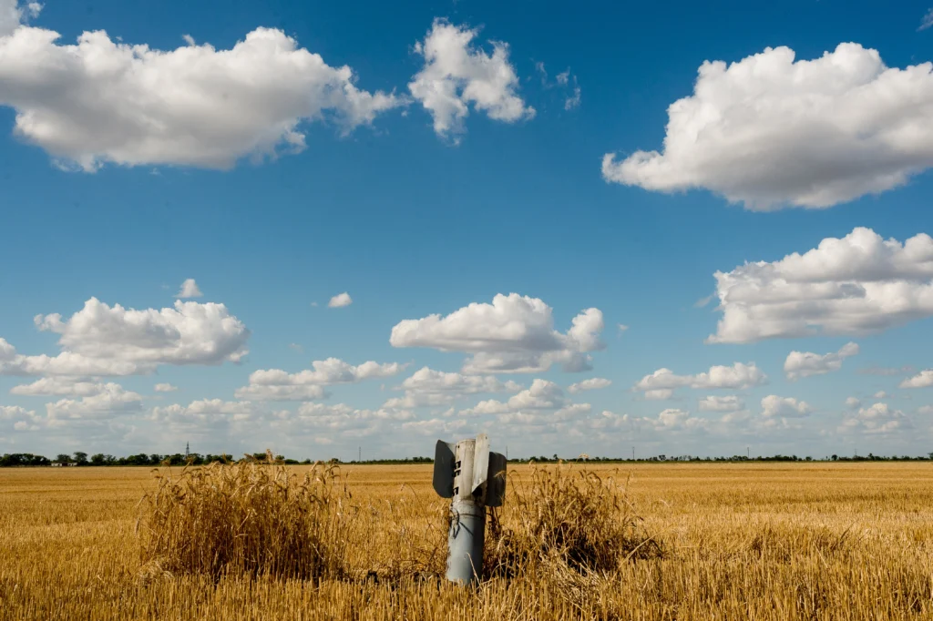 Неразорвавшаяся кассетная бомба на пшеничном поле в Николаеве, Украина, 22 июля 2022 года. Фото: Maciek Musialek/NurPhoto/Reuters.
