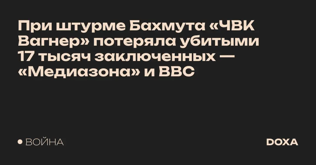 При штурме Бахмута «ЧВК Вагнер» потеряла убитыми 17 тысяч заключенных — «Медиазона» и BBC