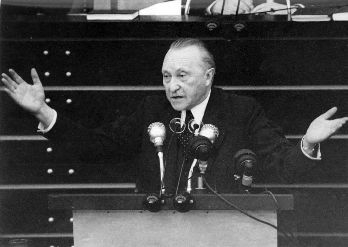 Аденауэр находился у власти 12 лет, ровно столько, сколько господствовал Гитлер, и он использовал это время на то, чтобы уничтожить большую часть вреда, который причинил Германии его предшественник.