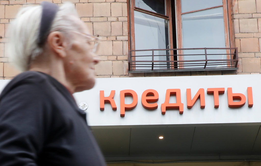 Вывеска с рекламой кредитов на офисе одного из московских банков. Фото: Максим Шеметов / Reuters