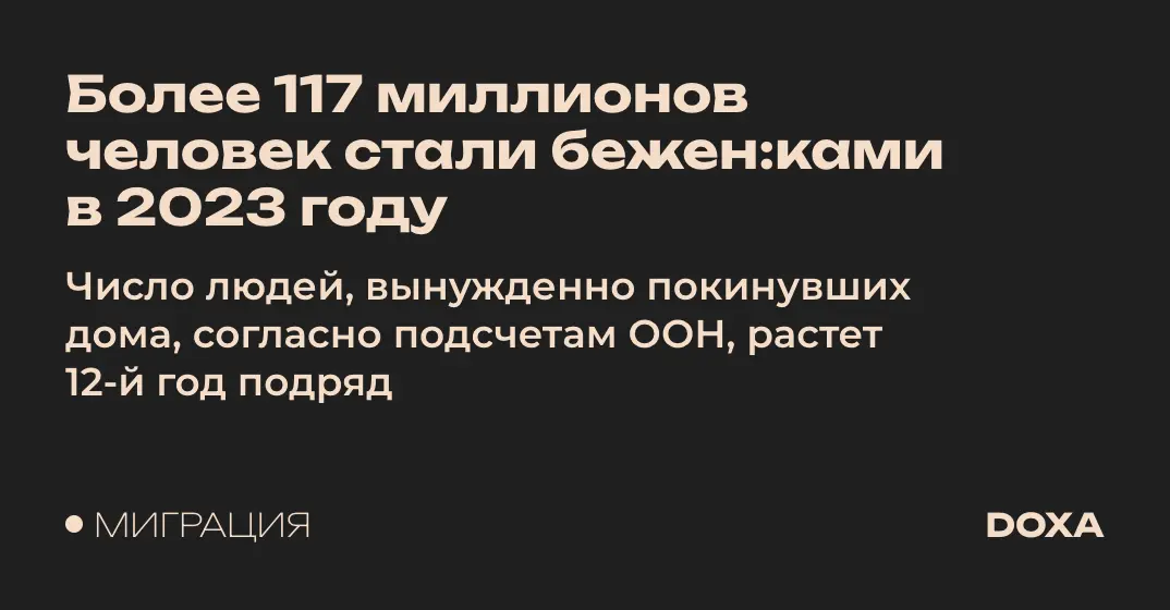 В результате преследований, конфликтов, нарушений прав человека и социальных катаклизмов почти 120 миллионов человек вынуждены были покинуть свои дома в 2023 году, сообщает Управление верховного комиссара ООН по делам бежен:ок. Цифра растет 12-й год подряд.