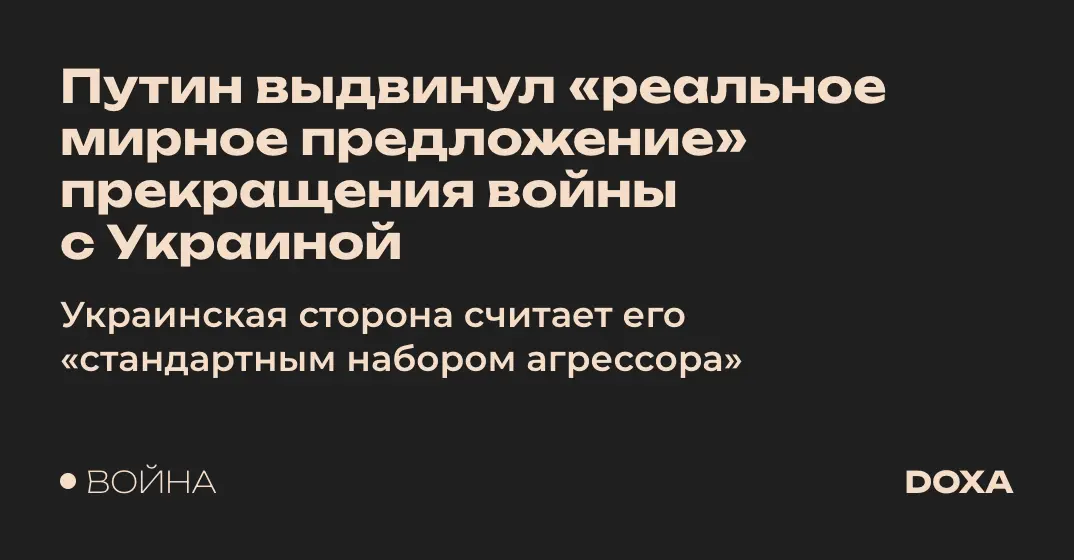 Путин выдвинул «реальное мирное предложение» прекращения войны с Украиной. Украинская сторона считает его «стандартным набором агрессора»