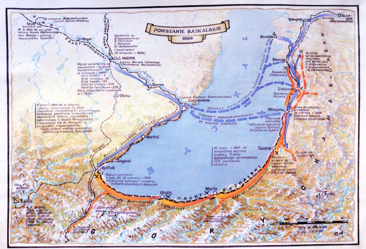 В июне 1866 года в Сибири началось одно из самых крупных восстаний польских ссыльных против царской администрации. Несколько тысяч человек, вооруженных косами, нанесли серьезный урон правительственным войскам. Планы у восставших были довольно смутные, одни рассчитывали пробиться на Дальний Восток и уплыть в Америку, другие мечтали об освобождении Сибири от колониальной зависимости по примеру Соединенных Штатов*.