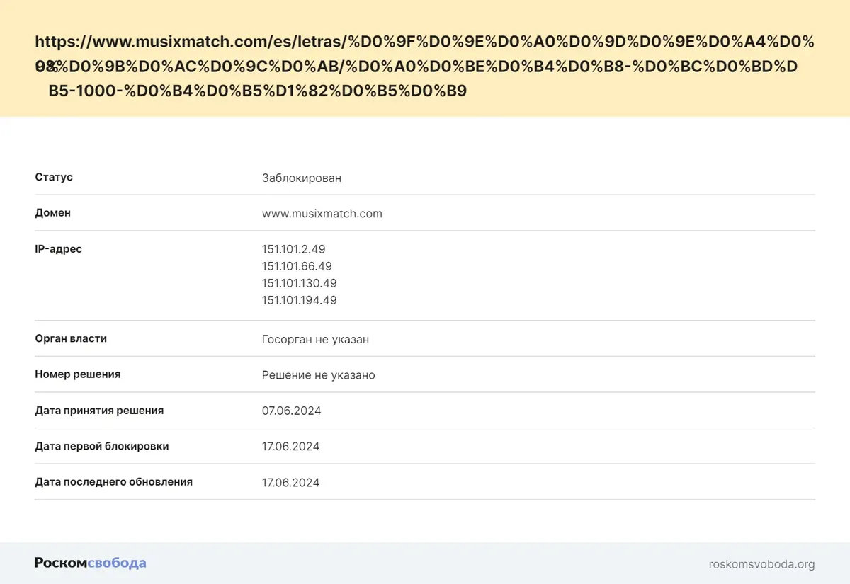 Решение о запрете 7 июня принял «Неуказанный госорган», следует из записи в реестре.