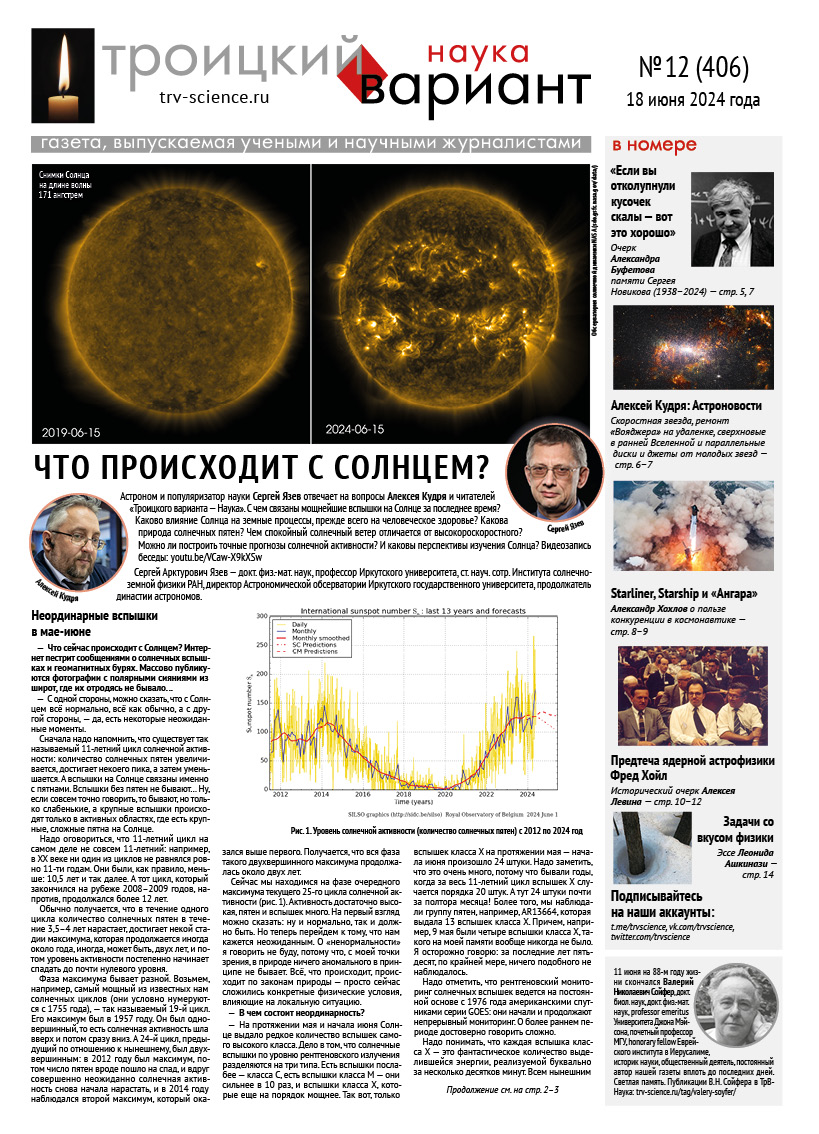 ТрВ № 12 (406) за 2024 г.: Что происходит с Солнцем? - Троицкий вариант — Наука