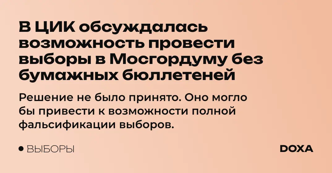 В ЦИК рассматривалось предложение Мосгоризбиркома провести выборы в Мосгордуму и муниципальные выборы в Подмосковье полностью в электронном формате. Позднее ЦИК и провластные СМИ опровергли решение о том, чтобы сохранить только электронное голосование на выборах.