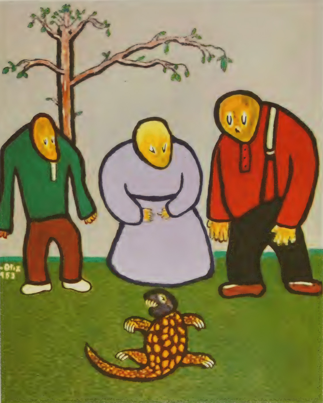 Картины Мистера Отиса — это совершенно отлетевшие сюжеты, написанные маслом на холсте, которые почему-то напоминают мне популярные работы художника Василия Ложкина. Кажется, мы с вами вряд ли сможем по достоинству оценить юмор и нюансы его полотен: все они так или иначе комментируют социально-политическую жизнь страны первой половины ХХ века и каждую сопровождает саркастичный и заковыристый комментарий Холбрука — главного специалиста по творчеству художника.