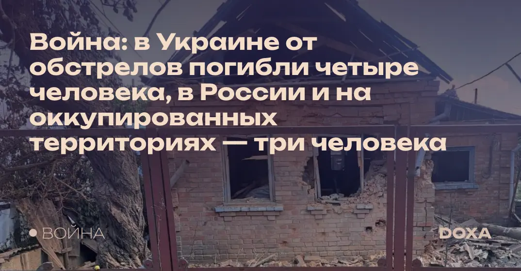 Война: в Украине от обстрелов погибли четыре человека, в России и на оккупированных территориях — три человека
