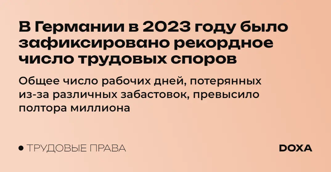 Среди факторов, которые повлияли на увеличение числа забастовок также названы вторжение России в Украину и пандемия ковид. При этом в 2024 году, по мнению исследователь:ниц из WSI, количество трудовых споров только увеличится, так как кампании реже заключают договоренности с профсоюзами на предприятиях в Германии.