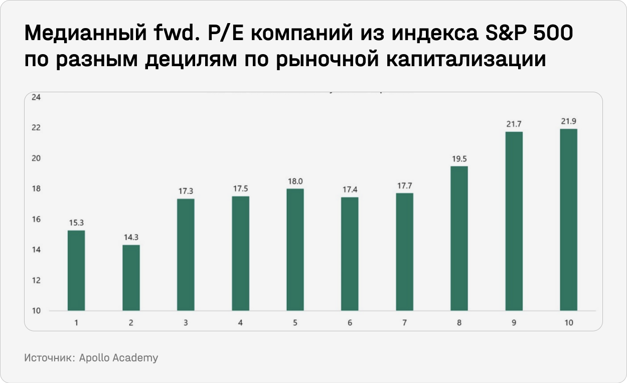 Быстрый рост Nvidia опять поднимает вопрос о том, стоит ли инвесторам вкладываться в самые дорогие компании. Как показывает недавнее исследование Apollo, в среднем чем больше компания, тем больше ее оценка — даже по отношению к ожидаемой прибыли.