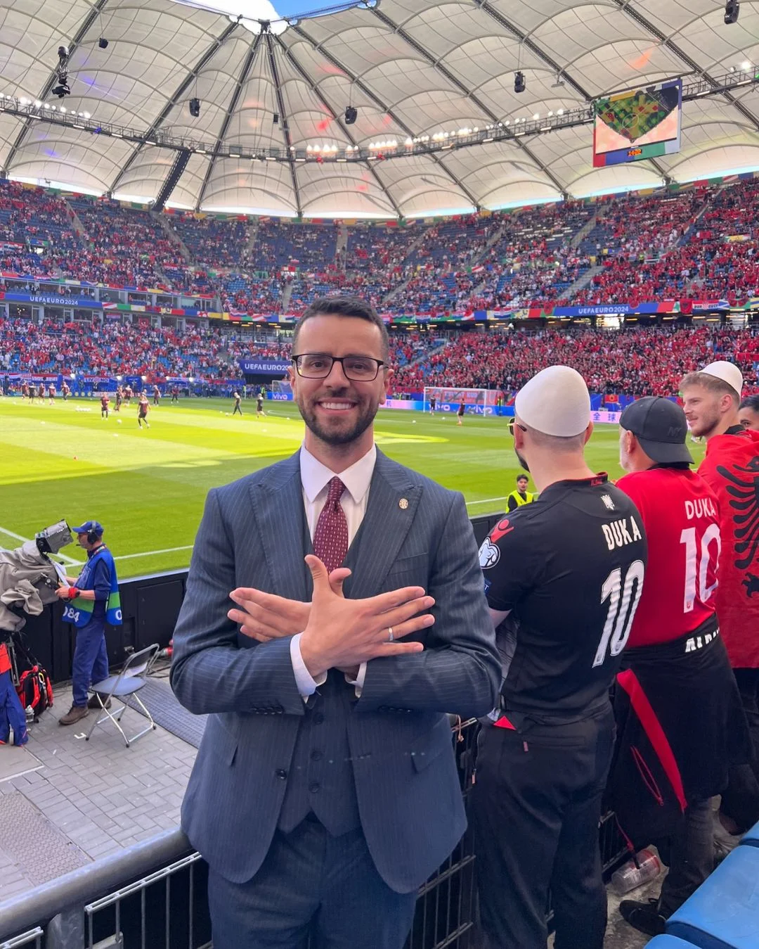 Косовского журналиста Арлинда Садику лишили аккредитации на Евро-2024 за то, что он во время матча сербов с англичанами показал болельщикам жест, обозначающий двуглавого орла: символ и Косово, и Албании. После матча Футбольный союз Сербии направил ноту протеста в УЕФА и в медиа, которое представляет репортер.