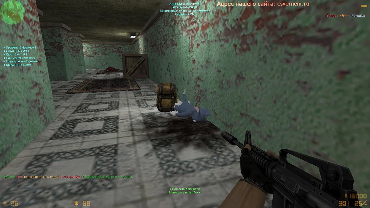 Уже на другом российском сервере в чате приходят уведомления о том, откуда подключается новый игрок. В уведомлениях проявляется непозволительная наглость для сервера из России: Крым, Донецк, Севастополь названы украинскими вразрез с российскими законами. В 2024 году такая оплошность может повлечь проблемы, хотя никакого умысла тут нет: на серверах в CS 1.6 просто остановилось время, и технически игра уже не обновляется.