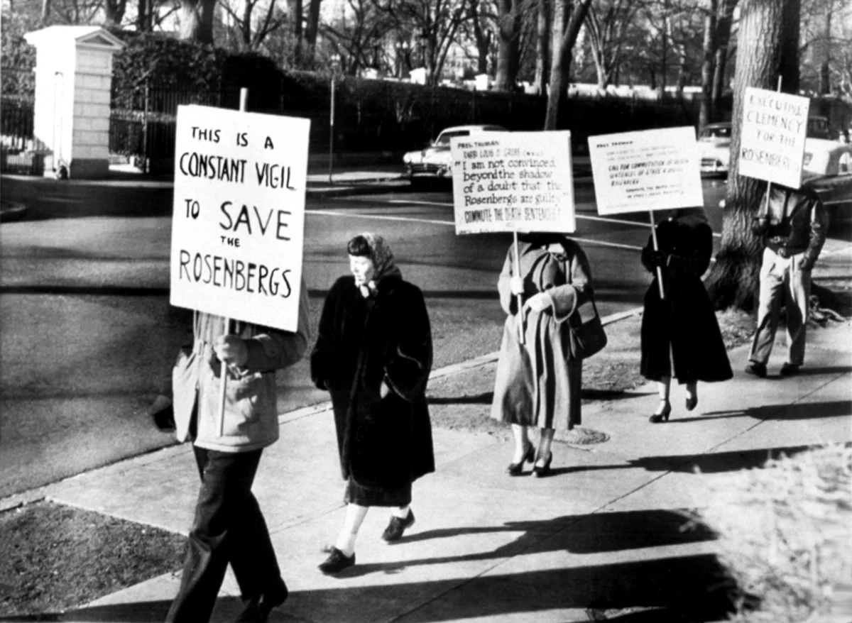 19 июня 1953 года в тюрьме Синг-Синг с разницей в один час были казнены Юлиус (Джулиус) и Этель Розенберги. В апреле 1951 года их признали виновными в шпионаже в пользу Советского Союза, возложив на супругов ответственность за передачу русским атомных секретов США. Об отмене смертного приговора супругам Розенбергам просили многие видные ученые, писатели, художники, президент Франции Шарль де Голль и папа римский Пий XII, но президент США Дуайт Эйзенхауэр был непреклонен. Перед казнью супругов поставили перед выбором: признание своей вины и помилование — или смерть.