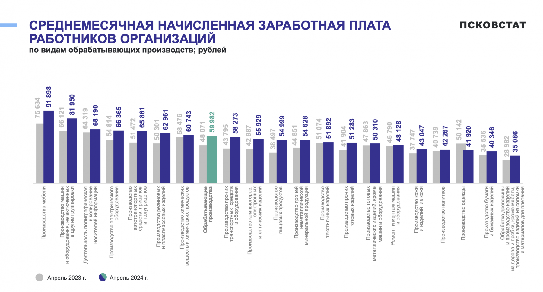 Средняя зарплата в Псковской области в апреле составила почти 50,7 тысячи рублей