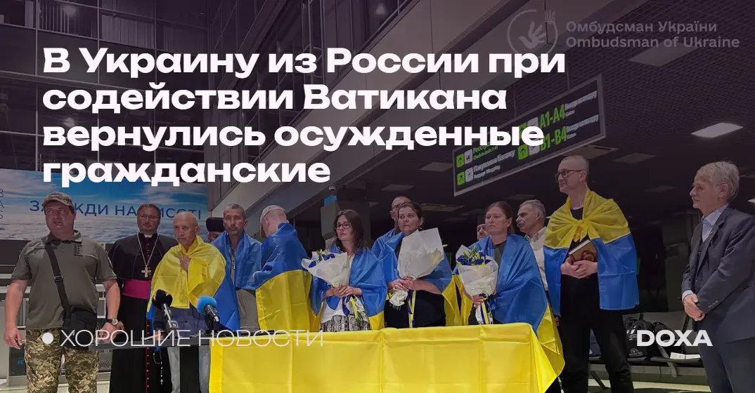 В Украину из России вернулись осужденные гражданские при содействии Ватикана
