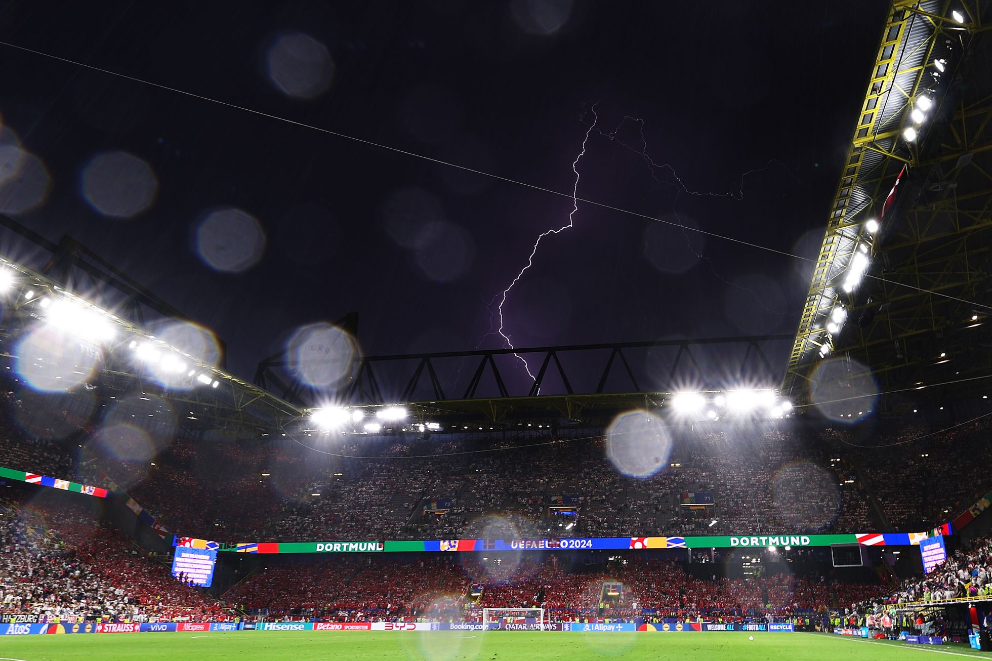 Германия с таким же счетом — 2:0 — обыграла датчан. На ход матча серьезно повлиял VAR: на 48-й минуте судья после подсказки видеоассистента отменил гол сборной Дании из-за небольшого офсайда, а уже через три минуты система зафиксировала игру рукой в своей штрафной у одного из датчан. Хавертц забил назначенный за это пенальти, а на 68-й минуте Мусиала установил окончательный счет. В середине первого тайма на Дортмунд, где проходила игра, налетела гроза и град: судье пришлось прервать матч на 20 минут.
