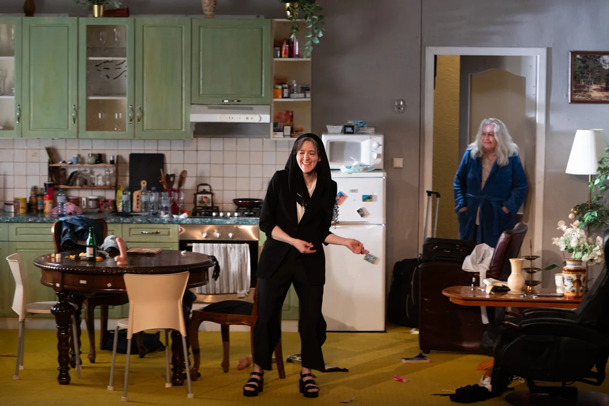 «Они не верят, что ты еврейка», — кричит дочь. «Это хорошо!» — хитро щурится Лили Монори, любимая актриса и талисман спектаклей Мундруцо. И продолжает писать. Поизводив дочь, она всё же начнет собираться. И тут из крана хлынет вода, потом прорвет трубу — в кухне начнется потоп (как это сделано и куда потом уходит вода — трюк, придуманный сценографом Моникой Пормале).