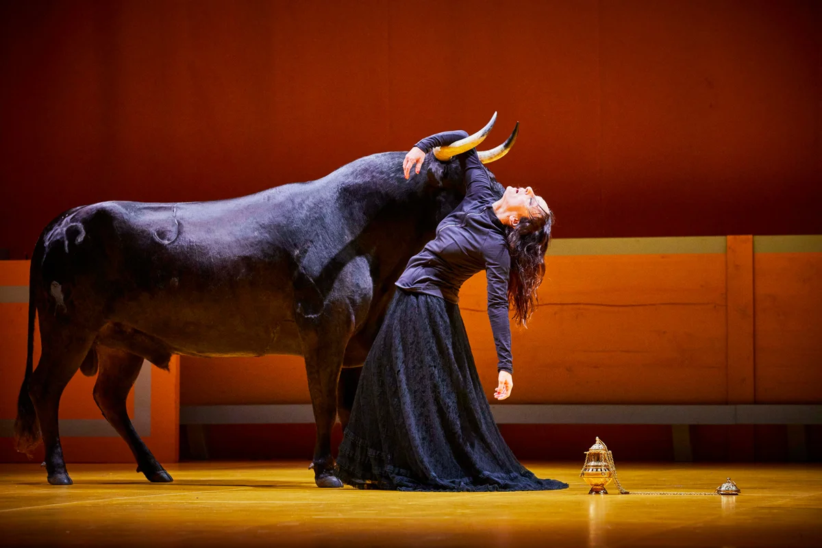 «Дразнить быка» Лидделл начинает еще в прологе: после сирены, предупреждающей об опасности, на сцене появляется бородатый дядька со стаей кошек на поводках. Еще в спектакле есть почти голый человек без руки и ноги, настоящие младенцы, которых Лиделл причащает вином под звуки органа, черный ненастоящий бык с белыми рогами, которого Лиддел назовет Тристаном; следом — сцена с кровавой бычьей тушей, висящей на крючьях; на десерт — высокий чернокожий красавец, с которым Лиддел танцует финальный танец. В этой «корриде» будет и кровь: в одной из первых сцен Лидделл садится за столик, выпивает бокал вина и, протерев колени спиртовой салфеткой, режет их бритвой, вытирает и показывает кровавую салфетку зрителям. Кто поопытней, усмотрит в этом намек на легендарные уже перформансы Марины Абрамович. Новички, не готовые к селф-харму, устремятся к выходу.