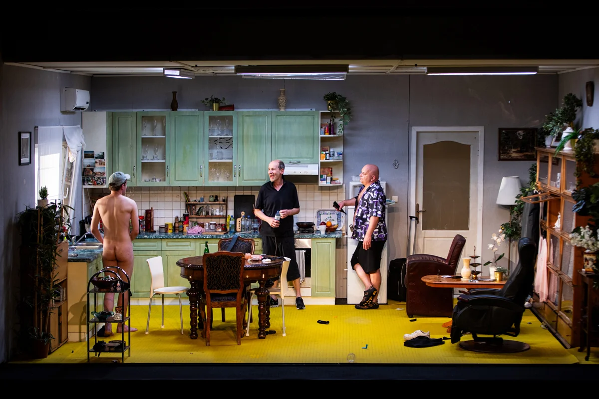 Говорят, в одном из пожилых геев венгры видят намек на политика Йожефа Сайера, члена Европарламента, ушедшего в отставку в 2020-м: во время ковидного локдауна его обнаружили на гей-вечеринке, — а в отношении к ЛГБТ+ Венгрия догоняет РФ. Знай венская публика об этом побольше, может, хохотала бы, как в свое время зрители МХТ на спектакле Константина Богомолова «Идеальный муж», где высмеивались тайные отношения кремлевских чиновников. Но это было в древние времена, 10 лет назад, — Богомолов скоро сам не поверит, что мог такое ставить.