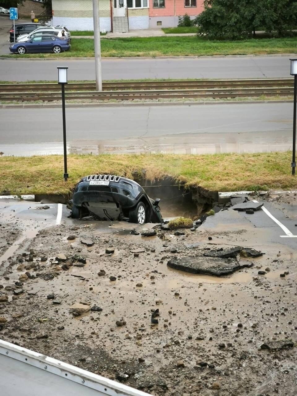 Барнаул: машина провалилась под землю из-за коммунальной аварии