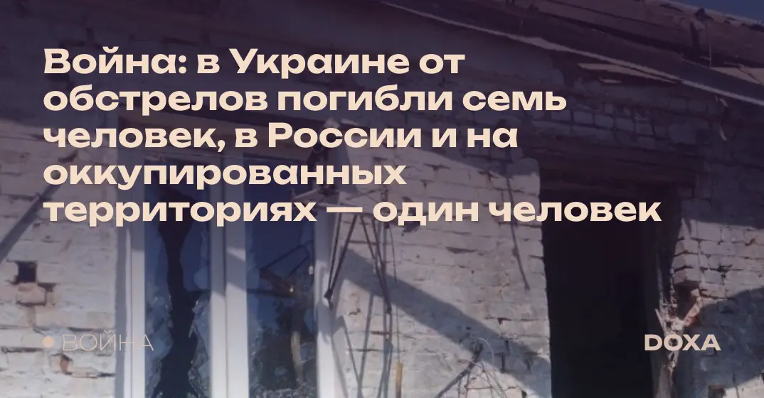 Война: в Украине от обстрелов погибли семь человек, в России и на оккупированных территориях — один человек