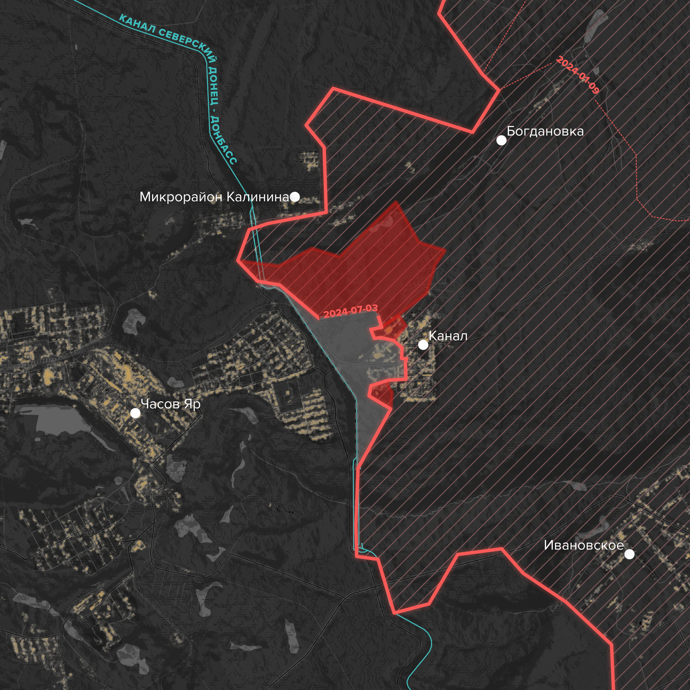- Российские войска после нескольких месяцев боев заняли весь (как утверждает Минобороны и украинские источники) микрорайон Канал на восточной окраине Часова Яра (правда, визуальных подтверждений полного контроля над микрорайоном пока тоже нет). Небольшой микрорайон с высотной жилой застройкой и промзоной отделен от центра города каналом Северский Донец — Донбасс.