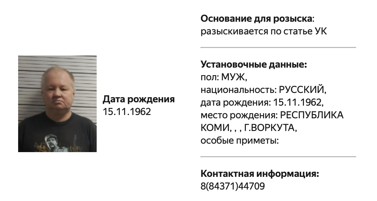 Скриншот из базы федерального розыска МВД