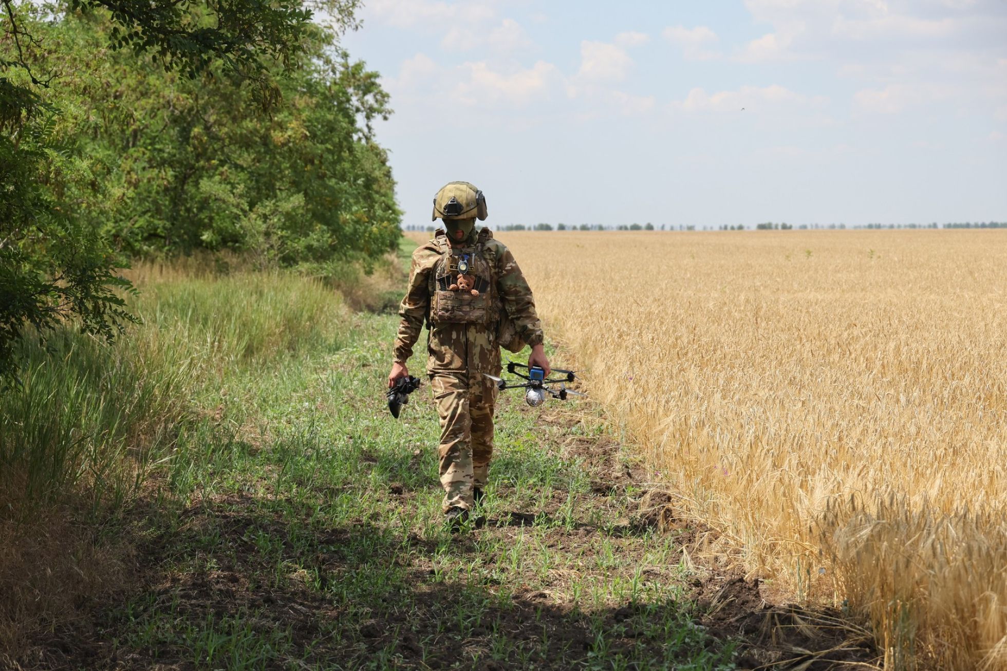 Активное использование разных типов дронов обеими сторонами — одна из главных отличительных особенностей данного этапа войны в Украине. Беспилотники, в том числе FPV-дроны, позволяющие операторам в прямом эфире наблюдать за происходящим, применяют как украинские, так и российские войска. Дроны могут как вести разведку, так и сбрасывать взрывчатку, нанося непосредственный урон противнику. На снимках ниже операторы дронов ВС РФ в оккупированной части Херсонской области.