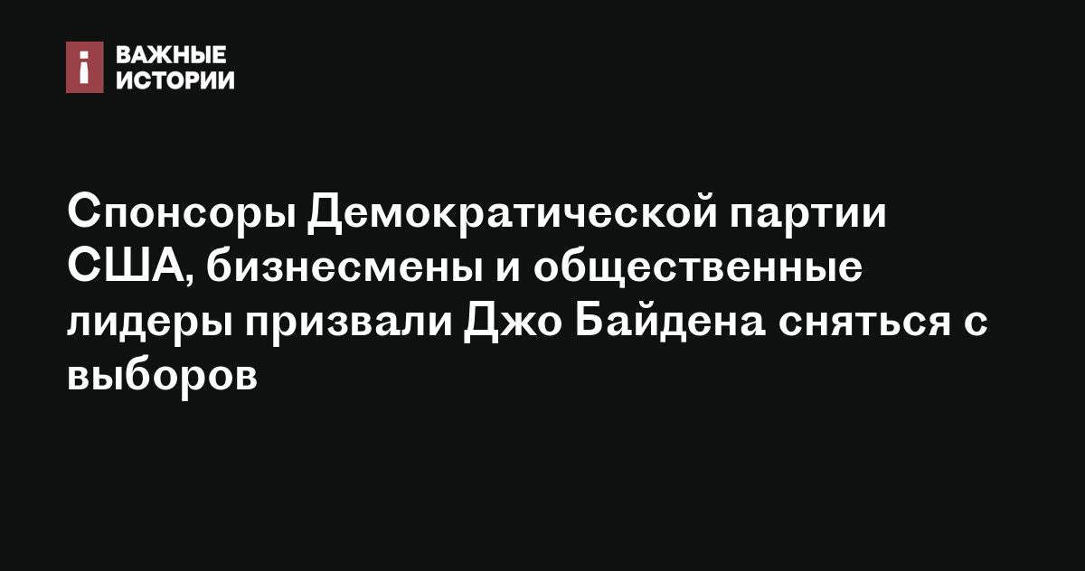Спонсоры Демократической партии США, бизнесмены и общественные лидеры призвали Джо Байдена сняться с выборов