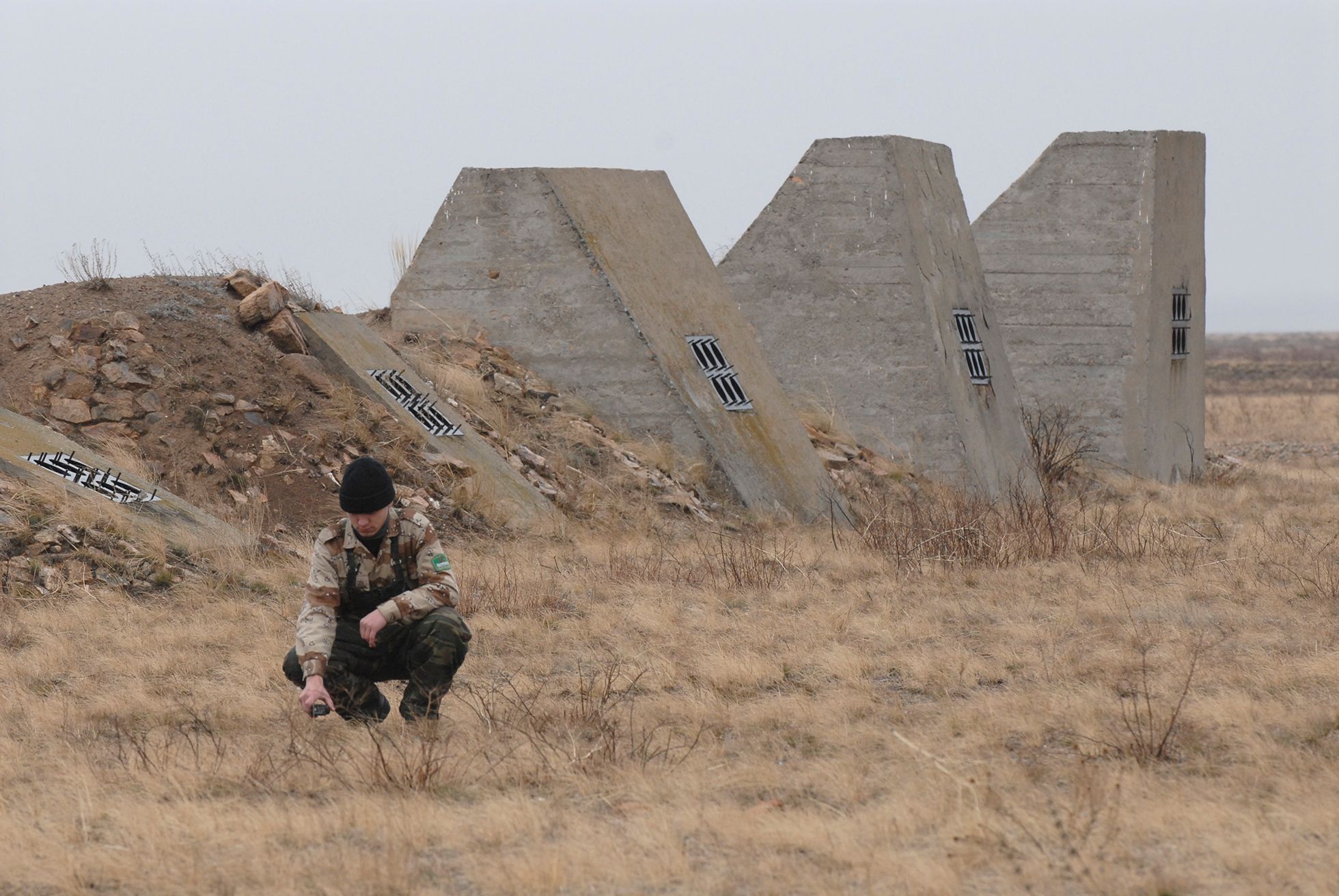 John van Hasselt / Corbis / Getty Images A scientist from the Institute of Radiation Safety and Ecology in Kurchatov takes a radiation reading near destroyed bunkers at the Semipalatinsk Test Site