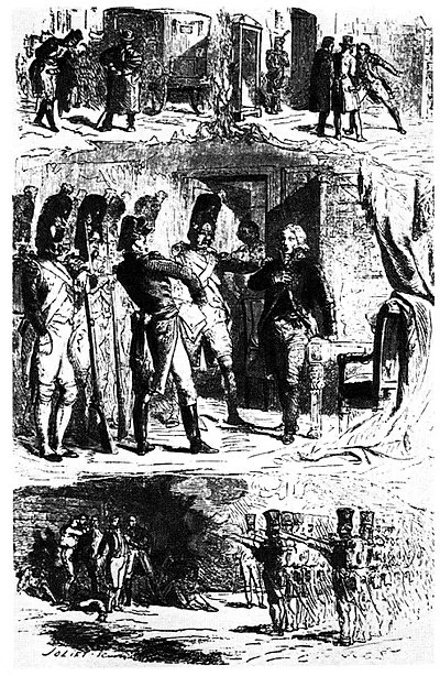 — Великий император! — восторженно подхватывал де Бюгонь, и, волоча по камням ногу, помятую в атаке при Аустерлице, он уходил проверять запоры тюремных камер».