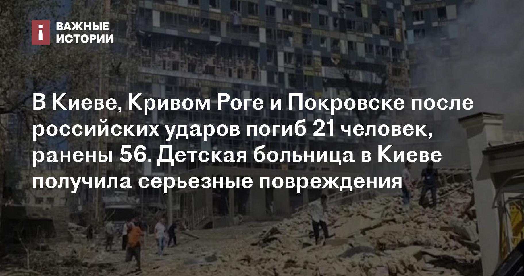 В Киеве, Кривом Роге и Покровске после российских ударов погиб 21 человек, ранены 56. Детская больница в Киеве получила серьезные повреждения