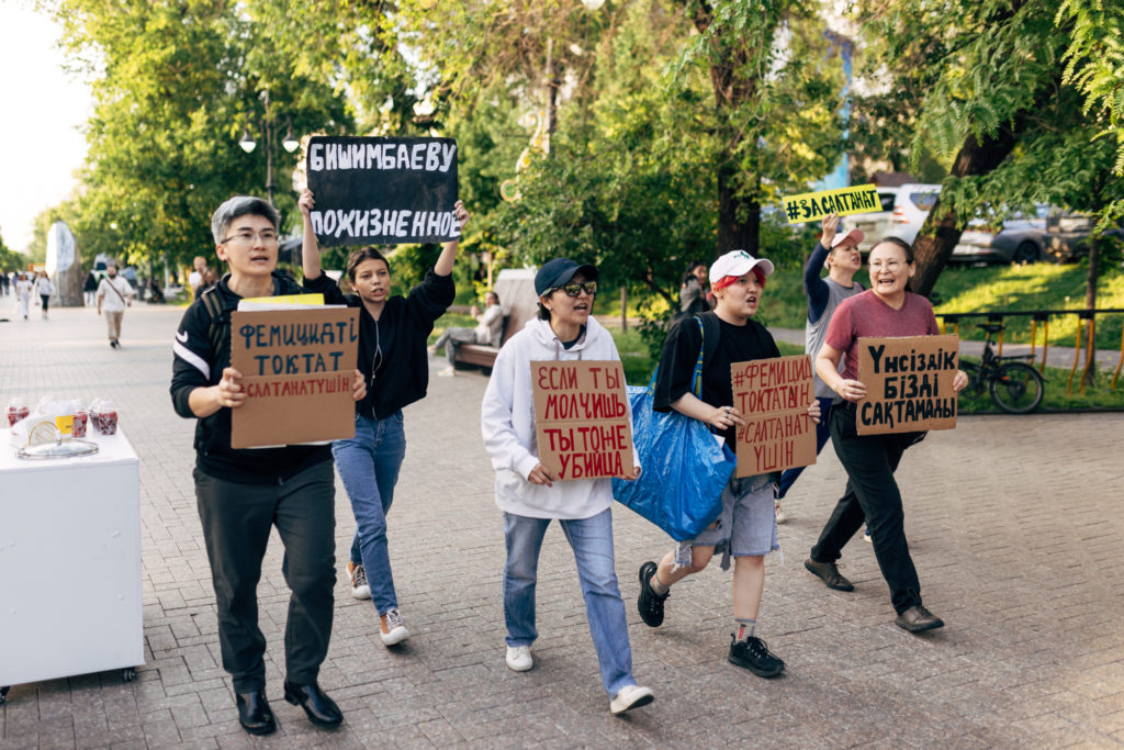 Один митинг против насилия в Алматы все же прошел. Он назывался «Скажем нет миру животных», участники выходили с плакатами против насилия и с портретами Салтанат Нукеновой. Активистки, с которыми общалась «Коса», считают, что он был организован под контролем властей, а все высказывания и материалы были заранее согласованы.