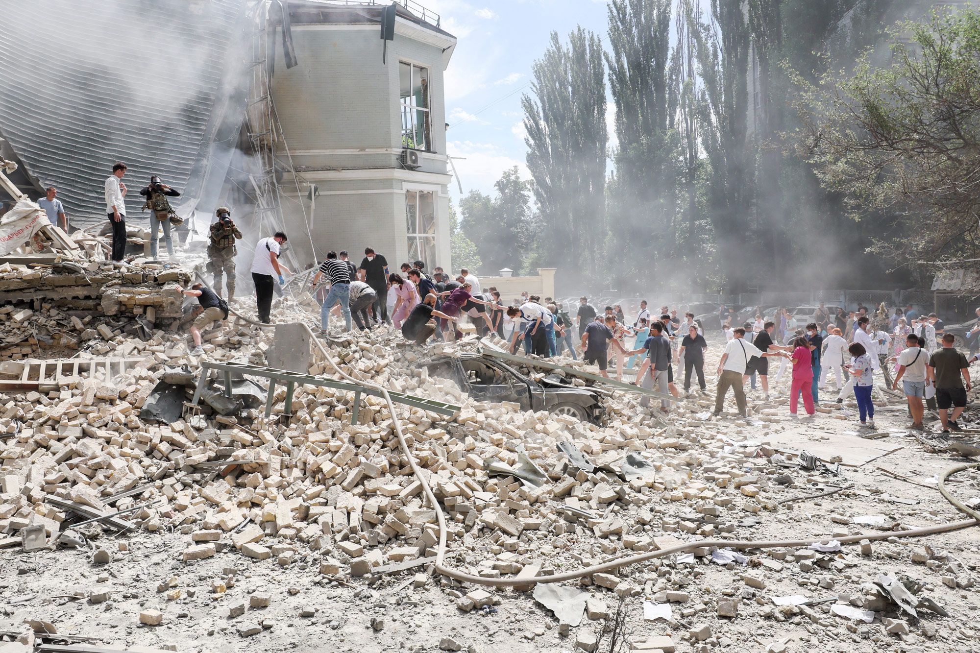 Ukrainian President Volodymyr Zelensky said on Telegram that people remain trapped under the rubble from the hospital strike. “Right now, everyone is helping clear the debris, [including] doctors and ordinary people,” he said.