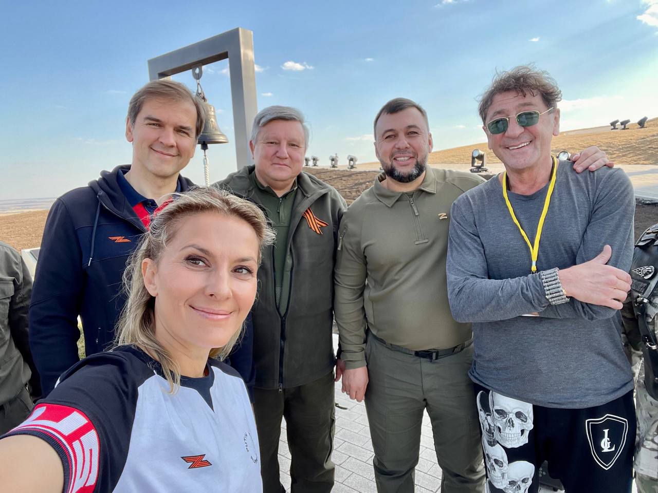 На церемонию открытия приехали Кириенко и Новиков, последний — с женой, московской журналисткой и телеведущей Екатериной Шугаевой. На фото в телеграм-канале Шугаевой пара в футболках с литерой Z позирует вместе с «главой» ДНР Денисом Пушилиным.