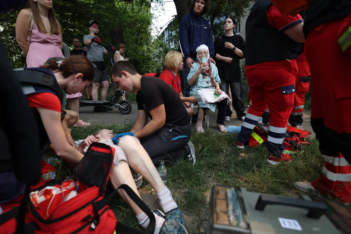Сотрудники экстренных служб работают на месте падения российской ракеты на детскую больницу в Киеве, 8 июля 2024 года. Фото: Евгений Малолетка / AP Photo / Scanpix / LETAПациенты детской больницы с капельницами на улице после российского обстрела Киева, 8 июля 2024 года. Фото: Глеб Гаранич / Reuters / Scanpix / LETAРазрушения в части детской больницы, пораженной российскими ракетами в Киеве, 8 июля 2024 года. Фото: Евгений Малолетка / AP Photo / Scanpix / LETAРазбор завалов у детской больницы, поврежденной в результате ракетного обстрела в Киеве, 8 июля 2024 года. Фото: Глеб Гаранич / Reuters / Scanpix / LETAЖенщина с детьми у больницы в Киеве после российского обстрела города, 8 июля 2024 года. Фото: Глеб Гаранич / Reuters / Scanpix / LETAДым над центром Киева после российского обстрела города, 8 июля 2024 года. Фото: Евгений Малолетка / AP Photo / Scanpix / LETAЛюди укрываются на станции метро во время российских ракетных ударов по Киеву, 8 июля 2024 года. Фото: Thomas Peter / Reuters / Scanpix / LETAСпасатели работают на месте повреждения жилого дома в результате российских ракетных ударов в Киеве, 8 июля 2024 года. Фото: Валентин Огиренко / Reuters / Scanpix / LETAПрохожие возле здания, поврежденного в результате российских ракетных ударов в Киеве, 8 июля 2024 года. Фото: Валентин Огиренко / Reuters / Scanpix / LETAВрачи оказывают помощь местным жителям, пострадавшим во время ракетного обстрела в Киеве, 8 июля 2024 года. Фото: Анатолий Степанов / AFP / Scanpix / LETAСпасатели работают над тушением пожара на месте ракетной атаки в Киеве, 8 июля 2024 года. Фото: Анатолий Степанов / AFP / Scanpix / LETAГорящие автомобили на месте ракетного удара в Киеве, 8 июля 2024 года. Фото: Анатолий Степанов / AFP / Scanpix / LETA