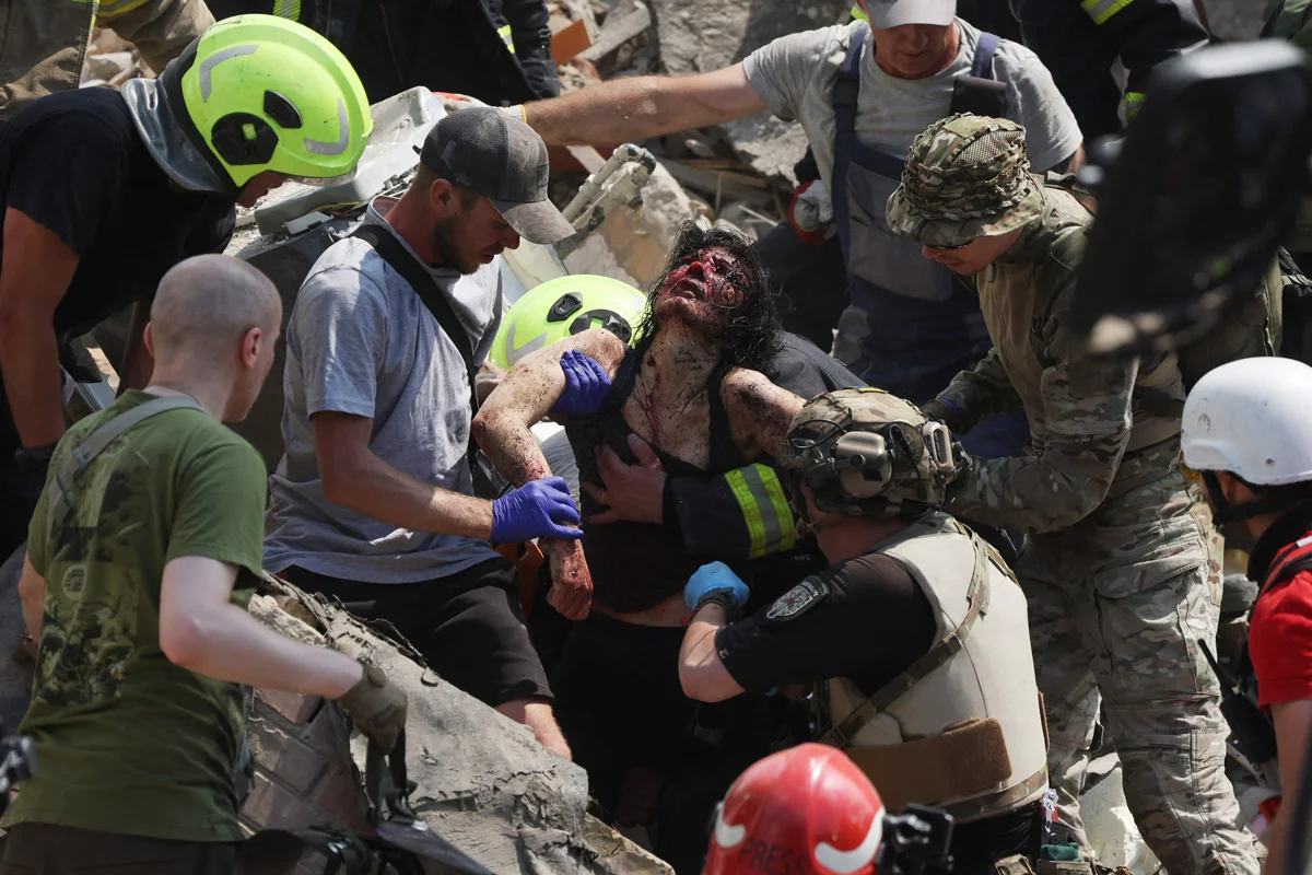 К спасателям присоединились прохожие. Преодолев шок, не менее сотни человек, оказавшихся рядом, бросились на помощь. Пробка из машин образовалась на подъезде: горожане везут минеральную воду, еду, малину, черешни… «Охматдет» можно назвать культовой детской больницей, последней надеждой для многих, отсюда и отношение горожан. «Везу воду!» — получаю месседж от подруги за рулем. В 13:00 звучит сирена тревоги: угроза баллистики! Все бегут в подземный переход. Драгоценные минуты истекают. Тревога короткая, звучит отбой: ракета сбита на подлете. Работы не успевают возобновиться, как сирена воет снова. Знакомая практика российской армии: дождаться, пока на месте, куда уже нанесли удар, соберется побольше народа, и продолжить начатое.