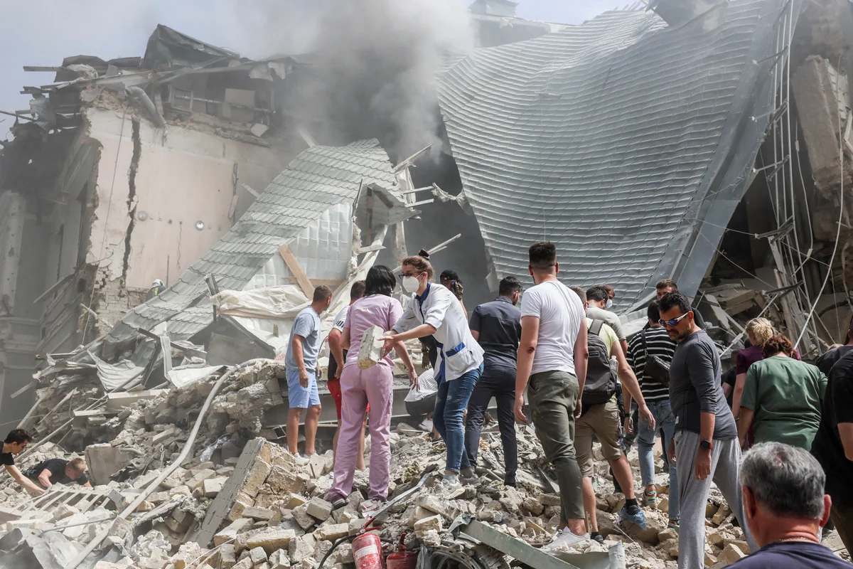 People remain trapped under the rubble of a children’s hospital in the Ukrainian capital