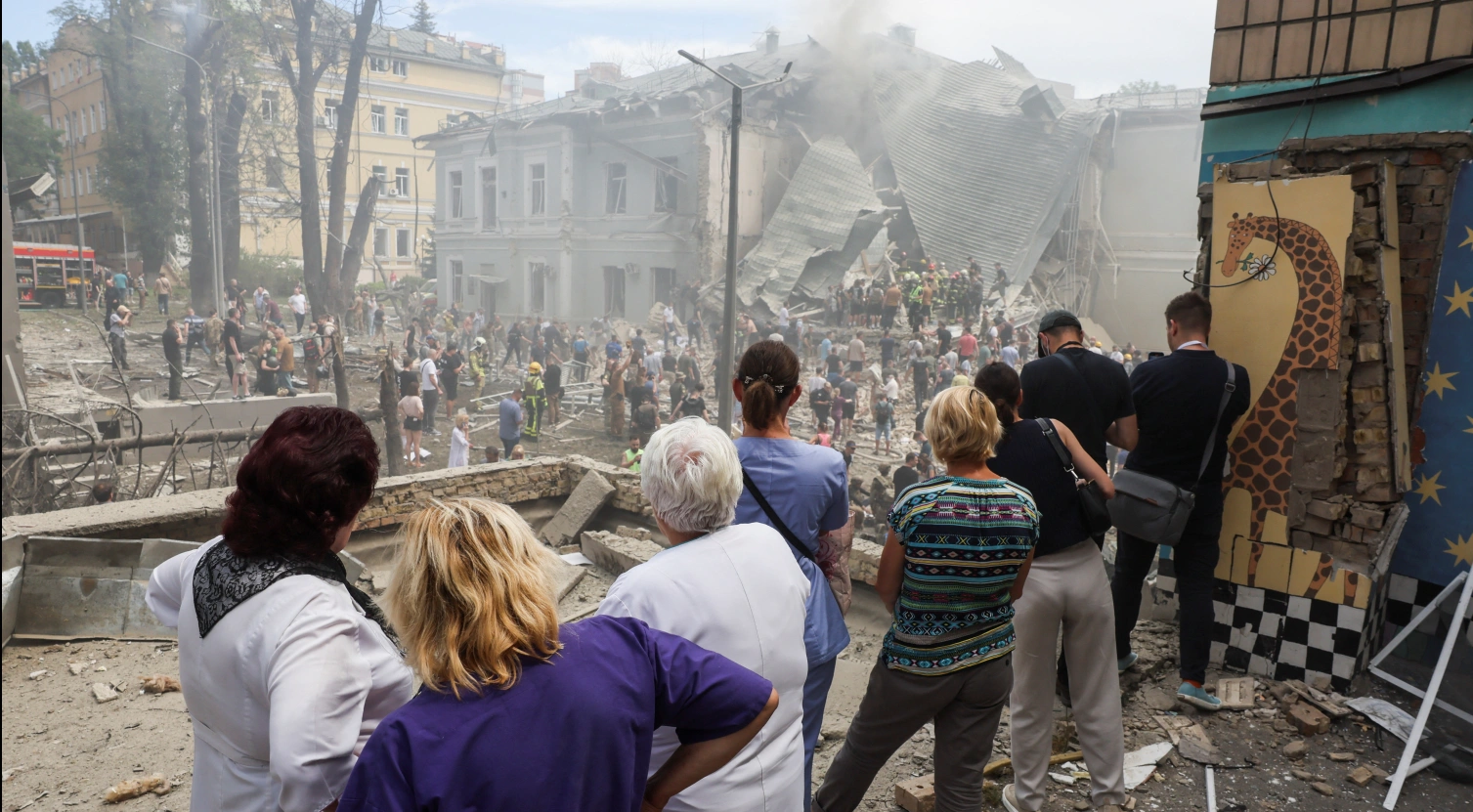 Во время атаки детей из больницы «Охматдет» эвакуировали вместе с капельницами, фото оттуда выложил Андрей Ермак. По словам главы Минздрава Украины Виктора Ляшко, основной удар пришёлся на корпус, где дети получали диализ – очистку крови, также повреждения получили реанимационные, операционные и онкологическое отделение.