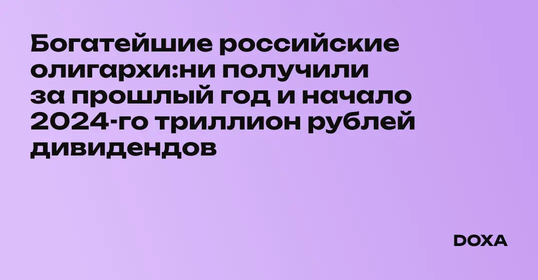 Богатейшие российские олигархи:ни получили за прошлый год и начало 2024-го триллион рублей дивидендов