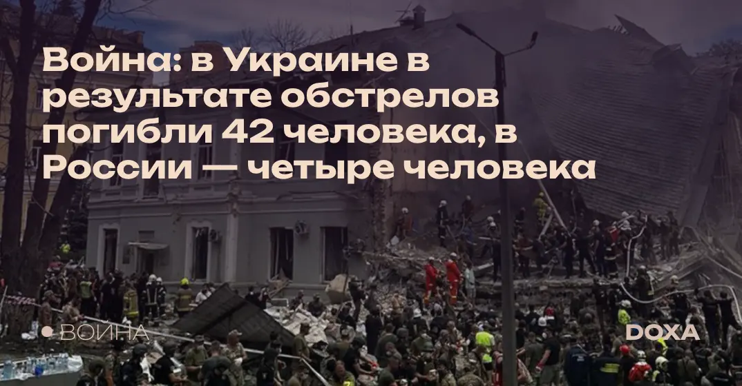 Война: в Украине в результате обстрелов погибли 42 человека, в России — четыре человека