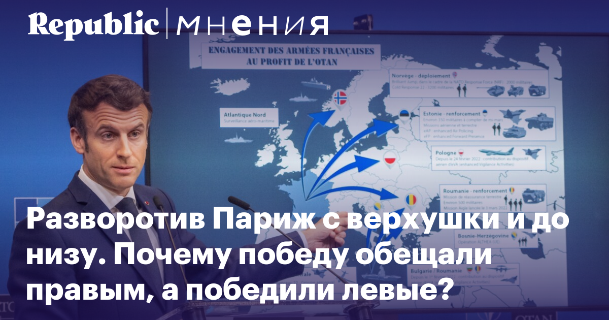Разворотив Париж с верхушки и до низу. Почему в неочередные выборы в Нацассамблею Франции обещали победу правым, а победили левые — и что это изменит