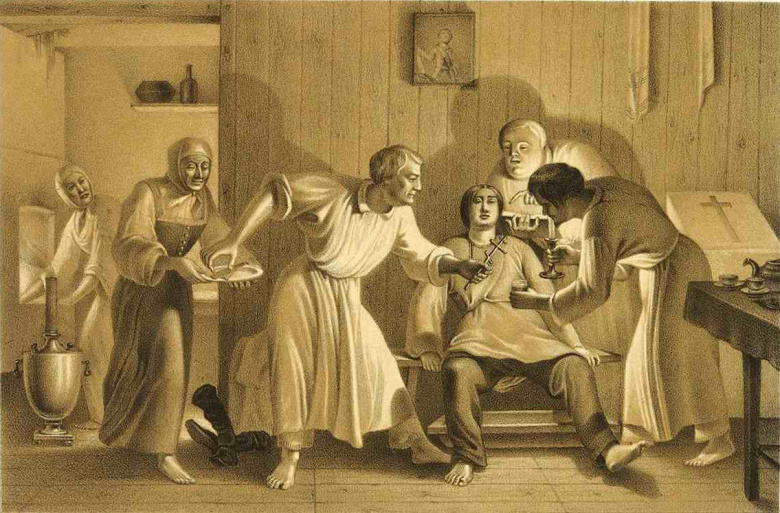 Оскопление. Литография из книги Владимира Даля "Исследования о скопческой ереси" ( 1844)