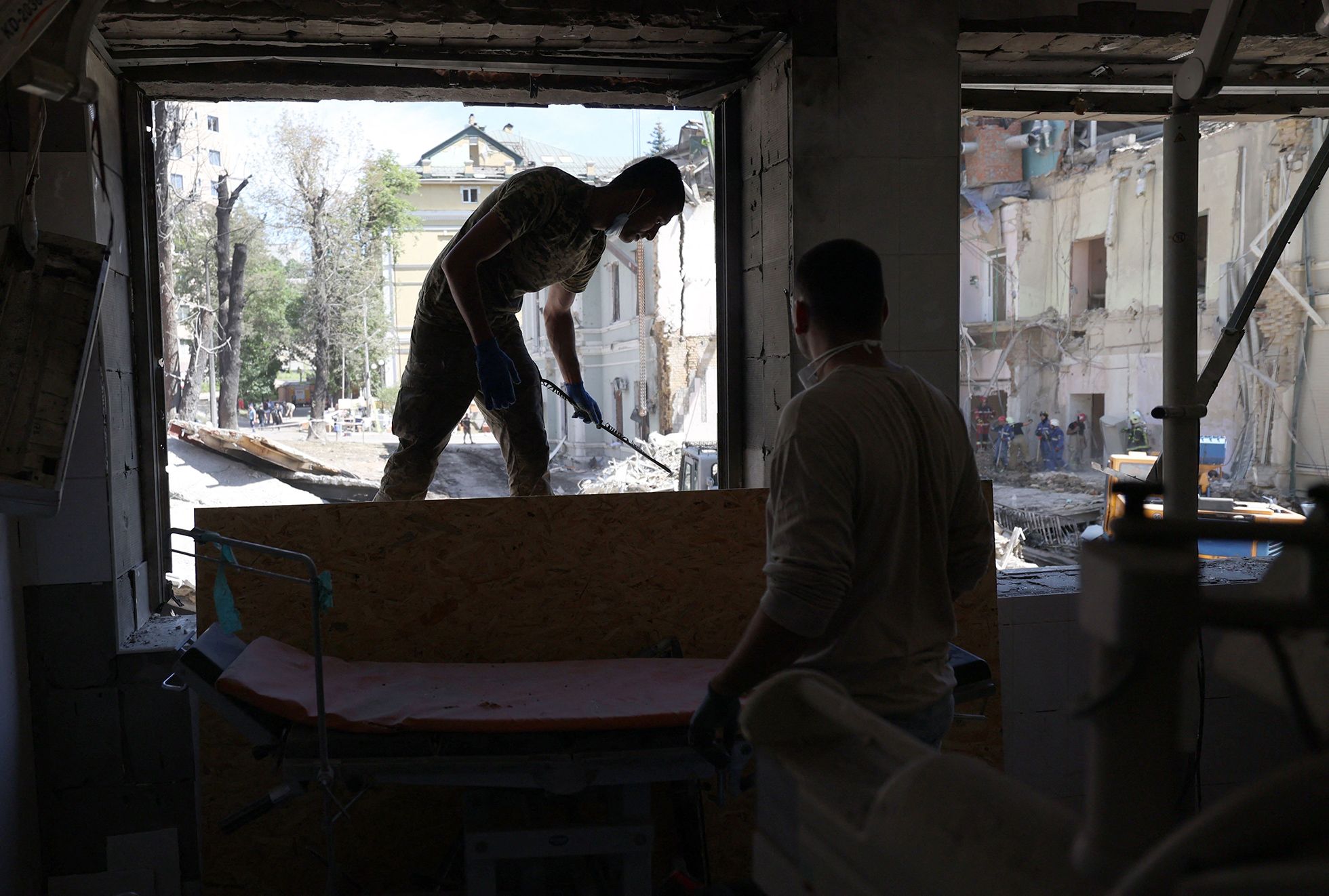 Мы с коллегами попытались оценить, какие повреждения нанесены «Охматдету» [8 июля]. Новый корпус разрушен настолько, что в нем нельзя работать. Наше отделение находится на третьем этаже: там ударной волной вывернуло потолки, выдернуло провода, порушило системы водоснабжения. То есть воды нет, а первые этажи еще и затоплены.