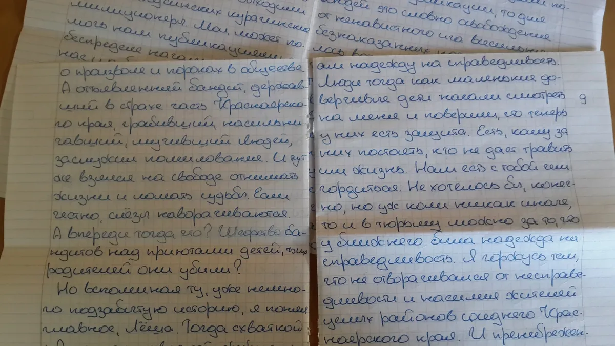 Про бензопилу — это образно, в реальности неуравновешенный персонаж то битой сломал кости женщинам, чтобы выдрать из их ушей сережки, а мужчинам — чтобы снять с них нательный крест, то (в последний раз) из ружья выстрелил в упор в лицо проезжавшему мимо 50-летнему велосипедисту. Беспричинно. В Следкоме позже уточнили, что задержанный «не помнит, что произошло, но уверен, что убитый нахамил ему». Старые и новые — после досрочного освобождения из тюрьмы —похождения Андрея Ащеулова (Ащеула) «Новая» описывала с перерывом в 7 лет, и сейчас разговор не о нем. О расположившейся вокруг публике. О молчании — только не ягнят. При всем сходстве тут феномен сложнее. О роли прессы. И о том, как динамично и, в общем, легко может закончиться власть неприкосновенного божка. Пусть районного масштаба. Районы в Красноярском крае — что страны в прочих частях света. Разговор об этом начал в письме из заключения Михаил Афанасьев: публикуем (с его разрешения) и продолжаем. Кто начал — важно, потому что журналист Афанасьев, в общем, и поставил предел Ащеулу: благодаря Афанасьеву курагинцев в прошлом десятилетии избавили от кошмара. Сейчас Михаил сам в тюрьме. Дважды лауреат премии Сахарова «За журналистику как поступок». 12 июля ему исполнится 48. На воле у него пятеро детей. Жена Михаила с двумя их детьми вынужденно покинула Россию.