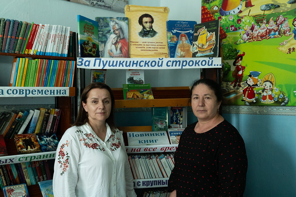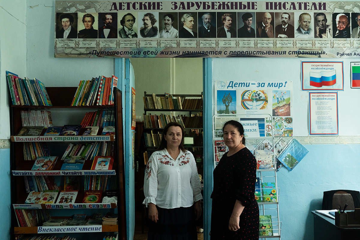 За администрацией притулился двухэтажный кирпичный дом с облупившейся побелкой и серпом и молотом на фронтоне. На верхнем этаже — драмкружок, на нижнем — библиотека. Посетителей нет, сотрудницы обсуждают теракт — и не понимают, как выходцы из села совершили такое страшное преступление. Ведь они их помнят еще детьми.