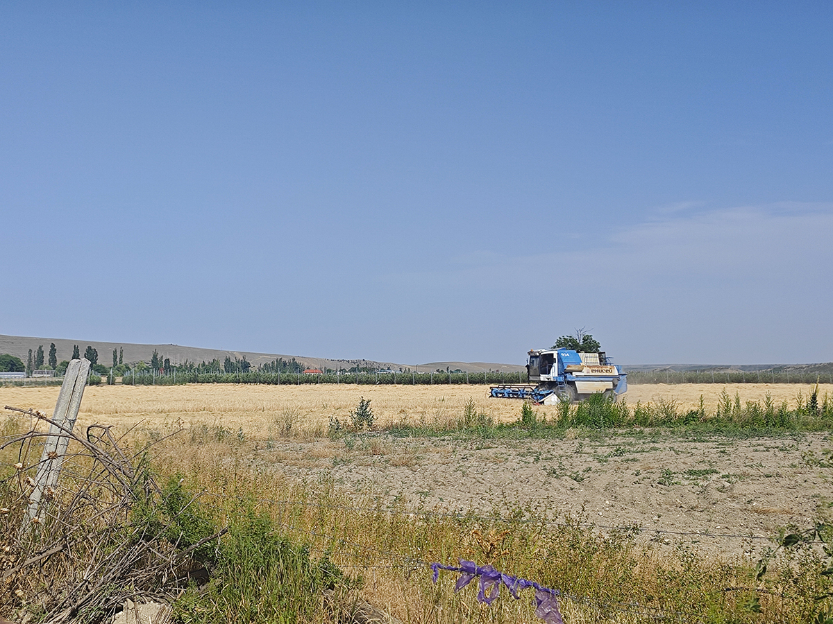 Комбайн на поле возле селаФото: Владимир Севриновский для ТД — После теракта тут много военных было. Как будто война началась, — вспоминает Мариям. — Мы на работу шли, а на улицах никого, только они стояли. Вечером уехали. Некоторых ребят забрали.