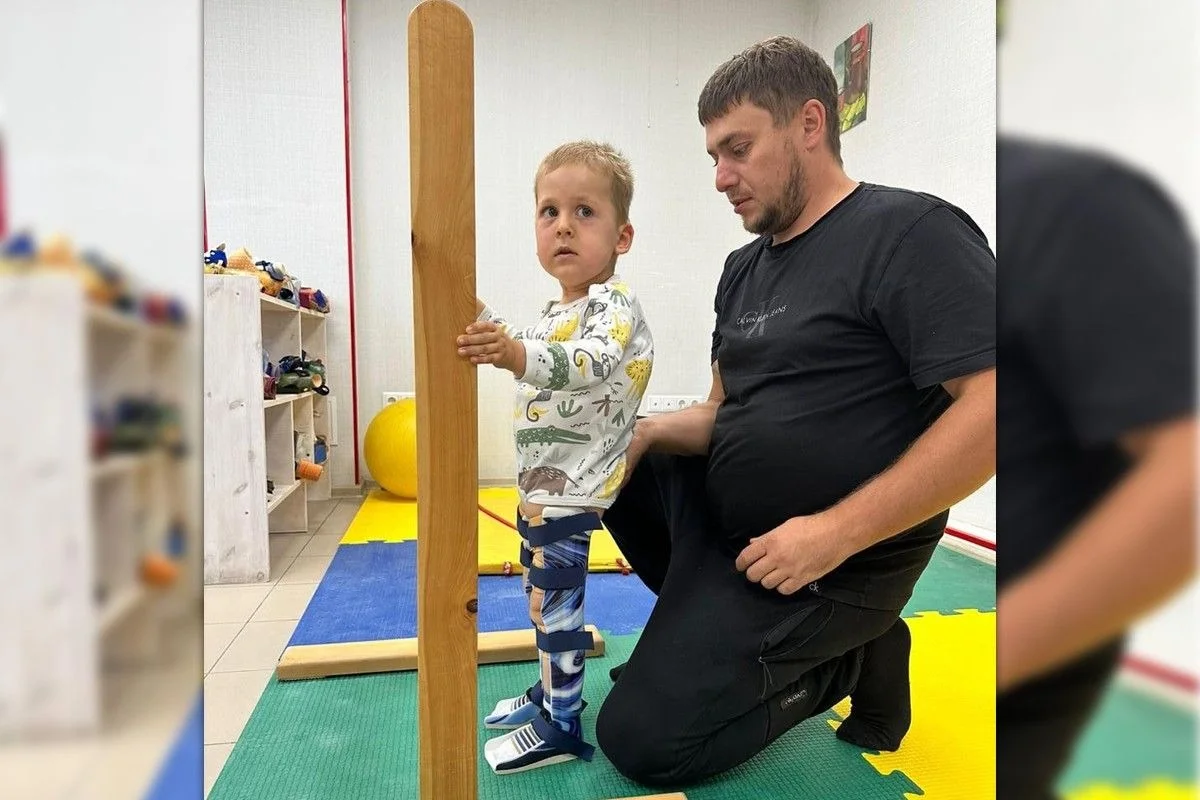 — У Миши появилась опора на ноги, он делает с поддержкой свои первые шаги, — говорит Дмитрий. — С мамой он топает по лестнице, сам поднимает ножки, даже иногда помогает себе руками.